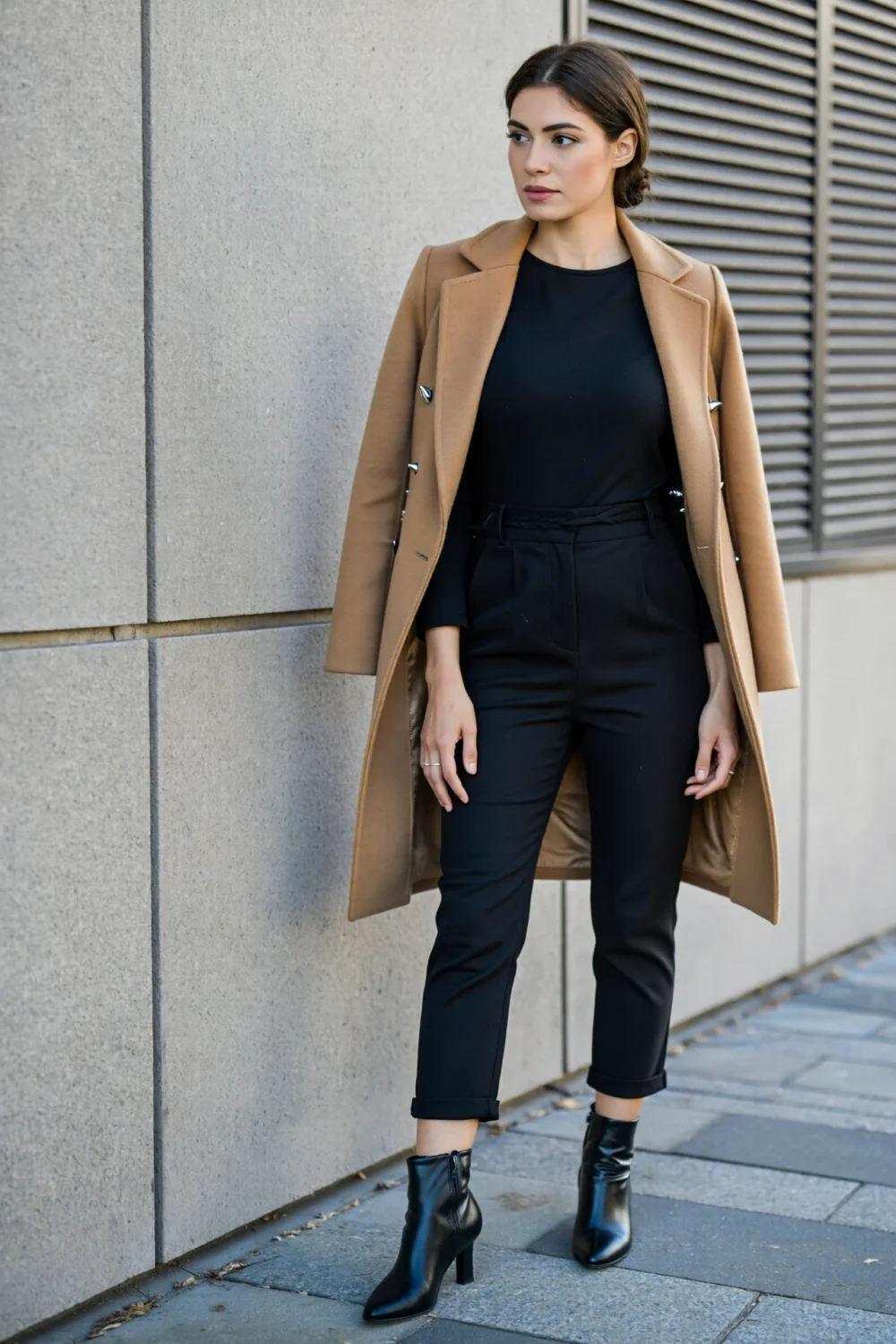 • Outerwear (if relevant): Longline blazer or tailored coat