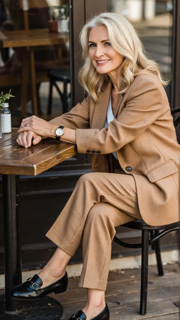 Fabric matters: wool for cooler days, cotton blends for breathability. It’s a no-fail choice for women seeking versatile tan blazer outfits.