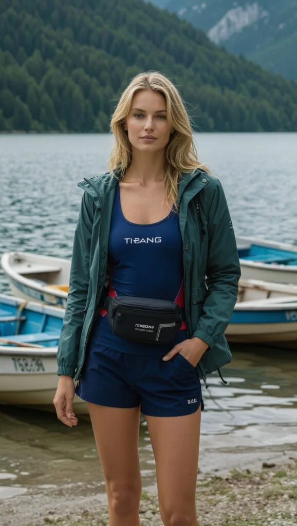 Cruise the lake in a swimsuit paired with water-resistant shorts and a moisture-wicking top, plus a windbreaker. This sporty-chic vibe keeps you cool and ready for waves.
