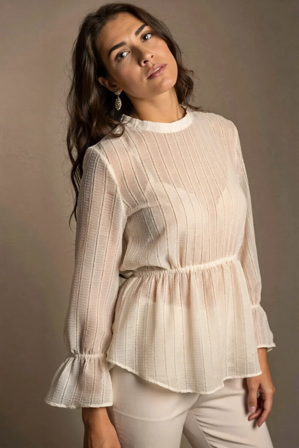 Infuse supermodel poise with a peplum top’s subtle waist flare, adding feminine movement that photographs like runway magic; it’s the structured whimsy that elevates headshots, creating balanced allure without overpowering your natural glow.