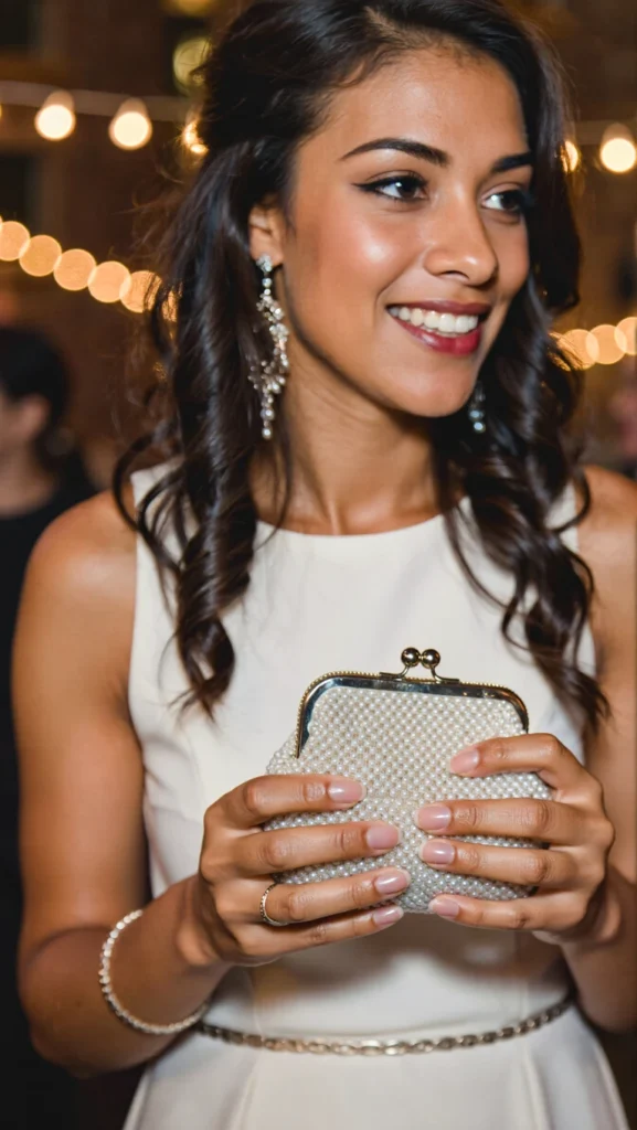 They keep you organized while elevating basics, like pairing a mini bag with monochrome magic for streamlined elegance. Visualize clutching a beaded pouch that sparkles as you mingle, turning heads with every gesture.