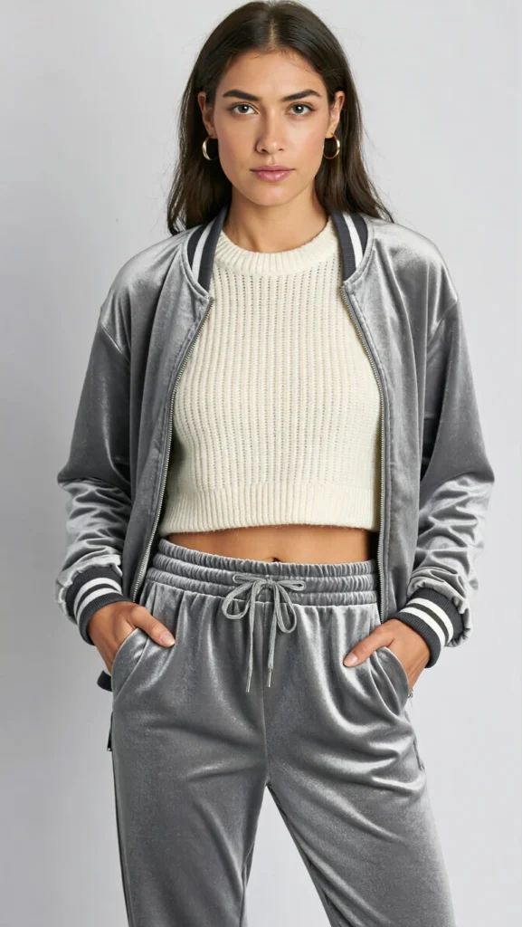 Try sleek metallic joggers with a cropped sweater for a sporty yet seductive look. Finish with embellished sneakers or a velvet track jacket for extra holiday flair and comfort.