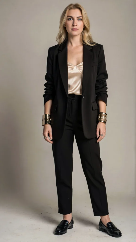 For varying dress codes, a tailored blazer over a satin cami (outfit #5) offers adaptability. Add statement cuffs for that extra flair.