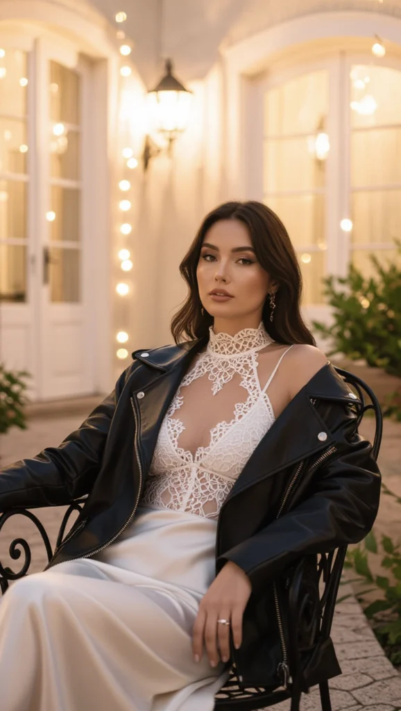 Ready to turn up the heat on those moonlit escapades? When it comes to what to wear under a leather jacket for date nights or evening soirees, think sultry layers that blend seduction with effortless edge.