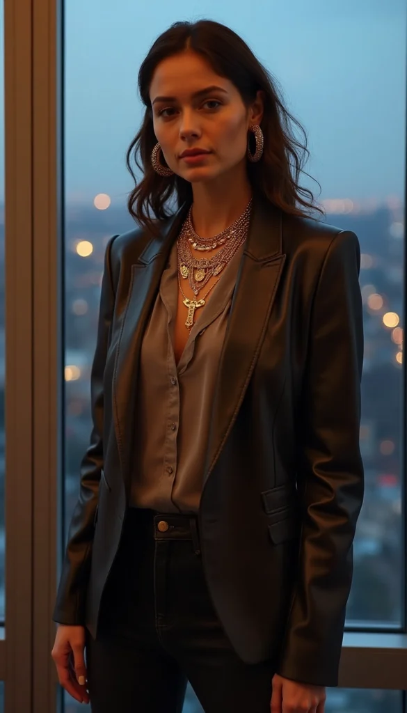 Isn’t it empowering how a simple shirt elevates leather into elegant armor? Perfect for women embracing body-positive fits, it balances structure with softness, making you feel like the boss you are.